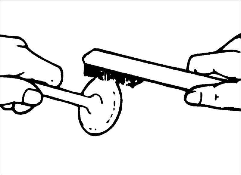 Осмотрите каждый клапан на наличие износа, повреждений и деформации в зонах А и В и, при необходимости, отремонтируйте или замените его. Если торец стержня изъеден или изношен, по мере необходимости восстановите фаски. Это восстановление должно быть ограничено минимальным снятием металла.
